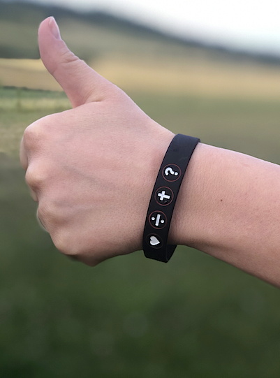 Opaska THE FOUR – czarna z symbolami z czerwoną obwódką